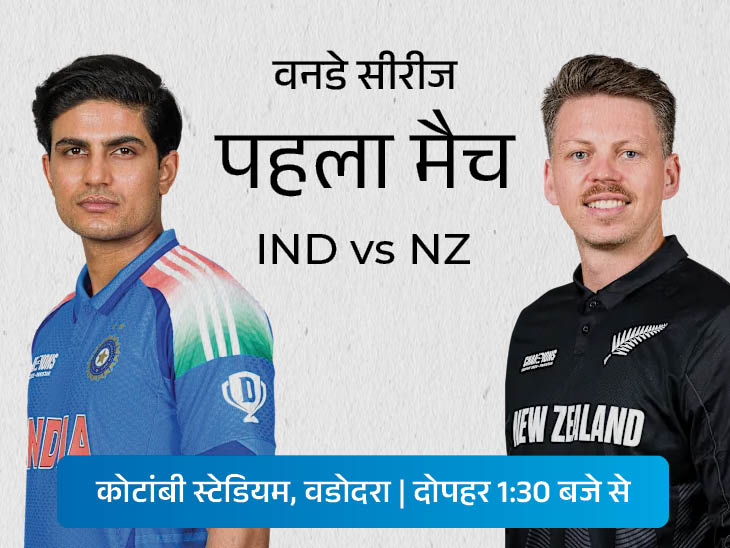 भारत और न्यूजीलैंड के बीच पहला वनडे आज वडोदरा के कोटांबी स्टेडियम में खेला जाएगा। मैच दोपहर 1:30 बजे शुरू होगा और टॉस 1:00 बजे होगा। भारत में दोनों टीमों के बीच 7 वनडे सीरीज खेली गईं, सभी होम टीम ने ही जीतीं। पूरी खबर