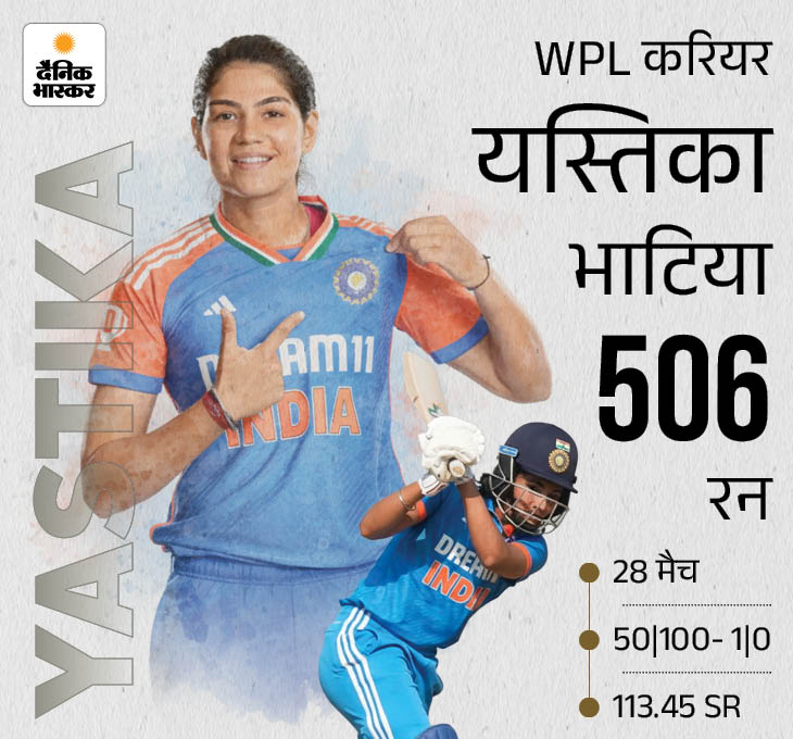 WPL 2026 से यास्तिका भाटिया बाहर हुईं: घुटने की सर्जरी से नहीं उबर पाईं ; गुजरात जायंट्स ने 50 लाख में खरीदा था